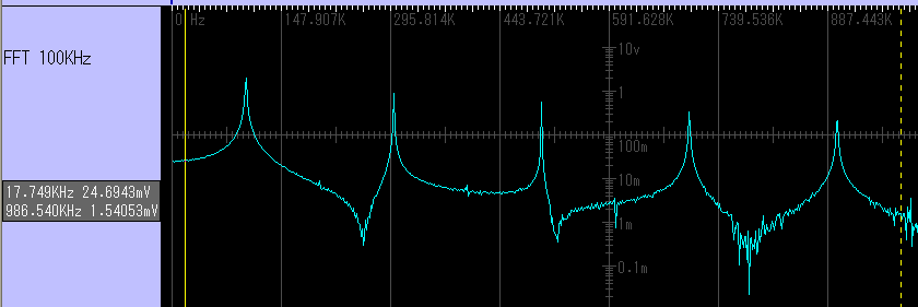 ・ロングメモリ&高感度の使用例: 微小電圧の音声サンプリングとそのFFT(1mV以下成分)