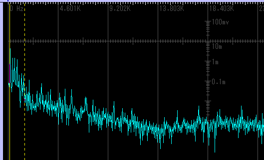 | 補足 オシロの高感度の説明に、”DIV最小が1mVから” という表現を見ますが、 DIVというのは、単に表示倍率なので感度とはあまり関係なくいくらでも小さくできます せっかくDIVが小さい単位があっても表示した波形がぼやけていたらそのDIVはただの拡大に過ぎません ”FFTの成分で1mVでもクッキリ表示できるか” これは具体的な感度の証明です |