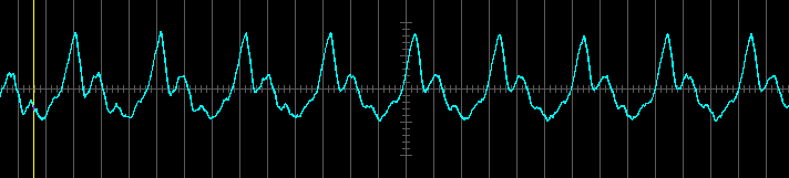 下図は、その音声波形(平均約10mVの片側振幅)のサンプリングです(約6秒間)