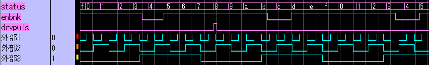 monitor[5..0] の構成の内、status、enbnk、は、大きな時間幅で変化しているので、そのまま接続してもこうして見れます