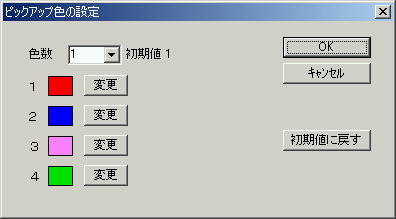 | 色数 | クリックする毎に入れ替わる 1,2,3,4 の色数を設定。 例: 2 なら、 OFF → 1 → 2 → OFF → 1 →2 |