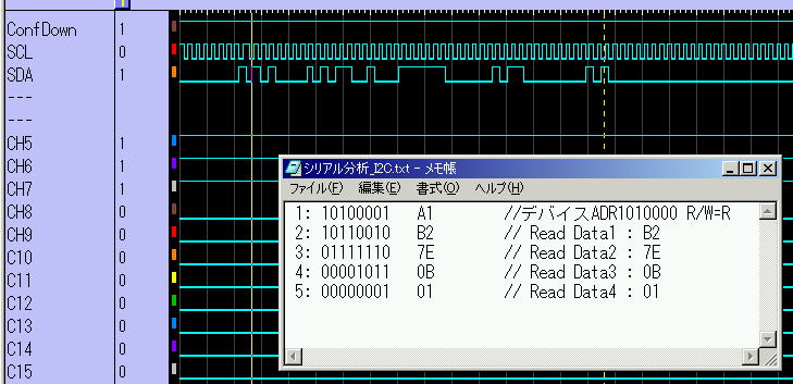 I2C専用のデコーダではありませんが、今回のように、I2Cも分析できております。