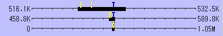 | 黒の部分:ゲージ。メモリ中の波形画面を表示している部分 黄色の縦線:カーソル。波形画面のカーソル位置と同じ T:トリガー位置 |
